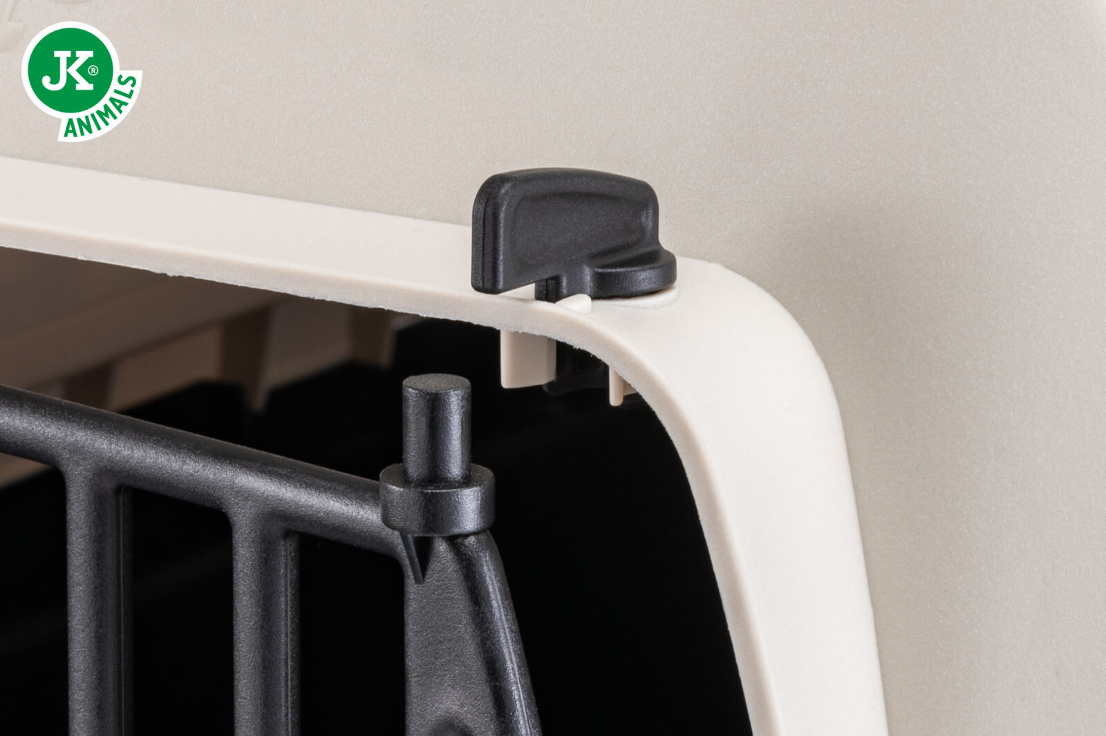 Dveře jsou vyrobeny z odolného plastu a jsou vybaveny bezpečnostní sponou, která zabraňuje náhodnému otevření během jízdy. Na horní části přepravky najdete pohodlné madlo, které usnadňuje přenášení. Rukojeť lze sklopit do prohlubně na horní straně přepravky, nezabírá pak žádné místo.