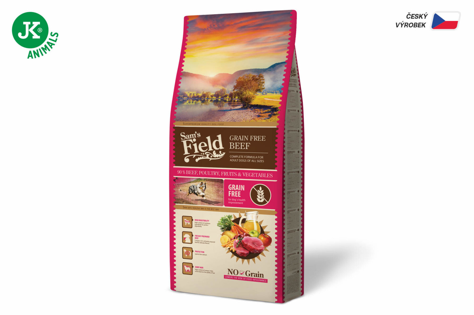 Sam's Field Grain Free Beef (Angus), superprémiové granule pro dospělé psy všech velikostí a plemen, 13 kg (Sams Field bez obilovin)