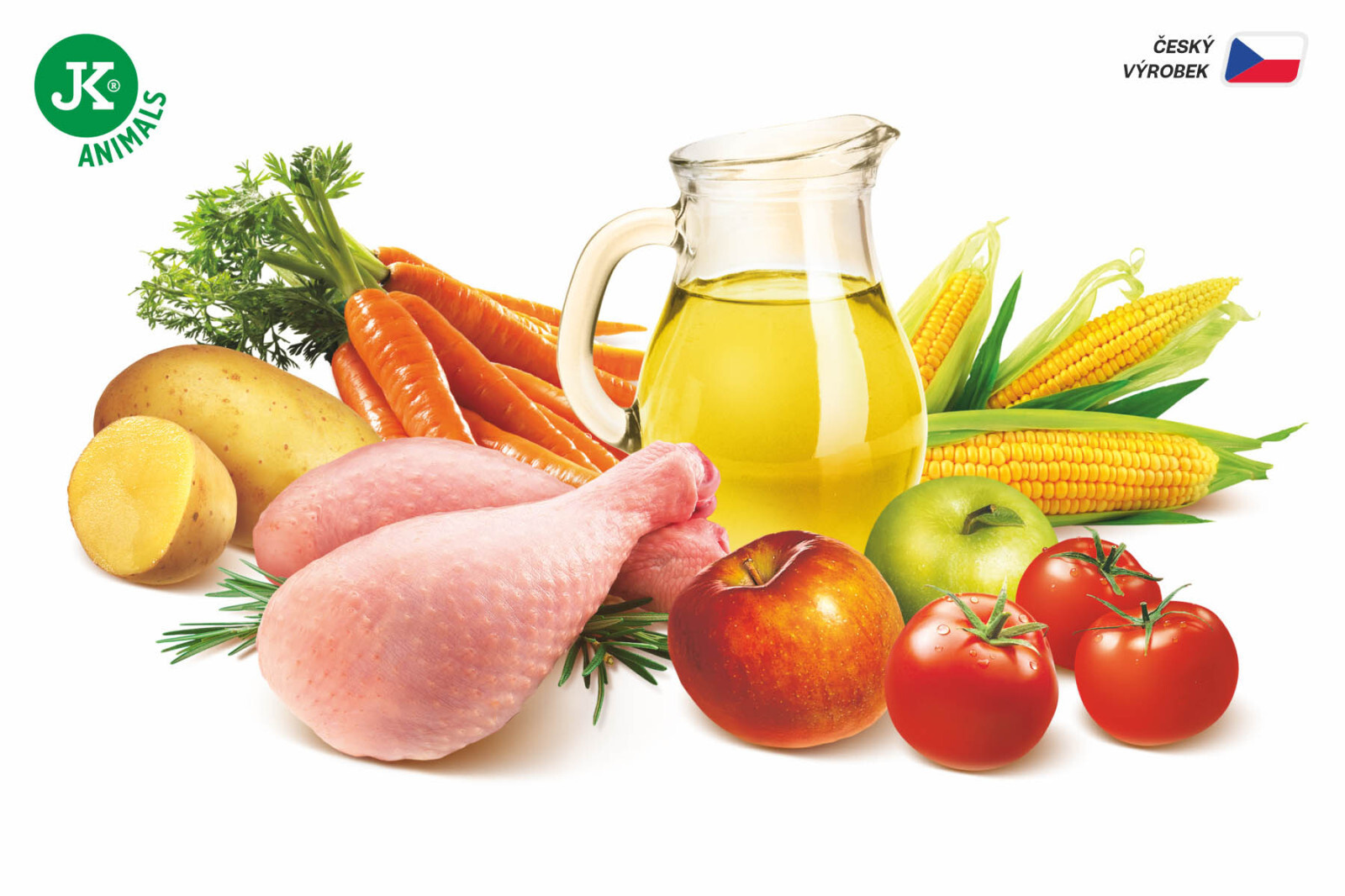 Složení: 33 % kuřete a 15 % kuřecí játry, 6 % brambor, kukuřice, kuřecího tuku (chráněno směsí tokoferolů, zdroj vitamínu E), lososového oleje, přírodní příchutě, sušených jablek, pivovarských kvasnic, rajčat, extraktu z juky, mrkve, minerálů, DL-metioninu, L-lysinu, mannanoligosacharidů, fruktooligosacharidů, probiotik, určené pro štěňata a mladé psy všech plemen ve věku od 1–12 měsíců. (Procentuální obsah surovin v krmivu je uveden v sušině dle EC 767/2009)