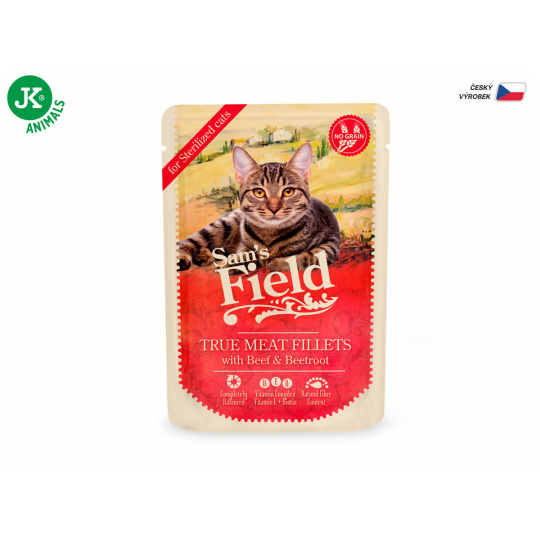Sams Field True Meat Fillets with Beef, Beetroot for sterilized cats, kapsička pro kočky 85 g (Sam's Field)