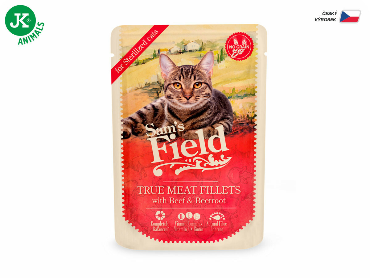 Sams Field True Meat Fillets with Beef, Beetroot for sterilized cats, kapsička pro kočky 85 g (Sam's Field)
