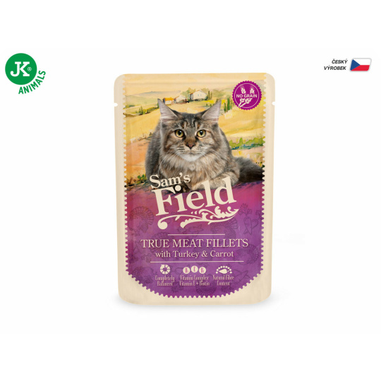 Sams Field True Meat Fillets with Turkey & Carrot, kapsička pro kočky 85 g (Sam's Field)
