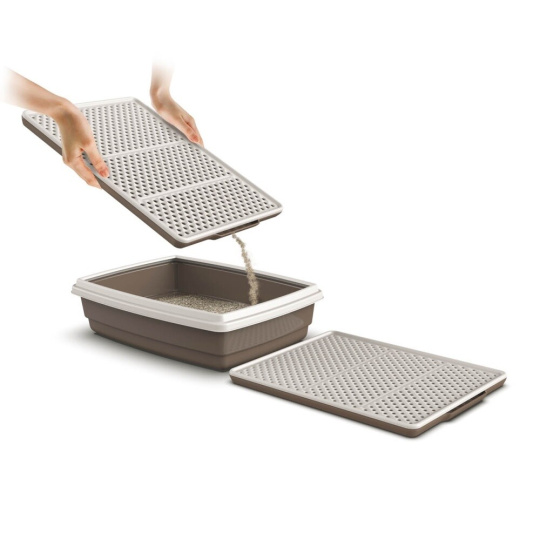 Pasuje ke všem standardním velikostem kočičích toalet. Jednoduchým způsobem vrátíte obsah toalety bez použití jiných potřeb jen za pomocí předložky, která má na boční straně otvor pro vysypání.