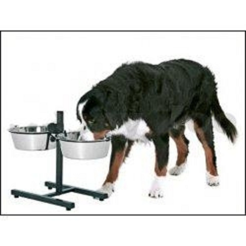 Posuvný stojan na misky o max. výšce cca 50 cm. Pes se nemusí při jídle ohýbat a lze tak předejít případným zdravotním komplikacím. Určeno pro misky o objemu 2,5 litru, misky jsou součásti balení.Nastavitelná výška až 40cm