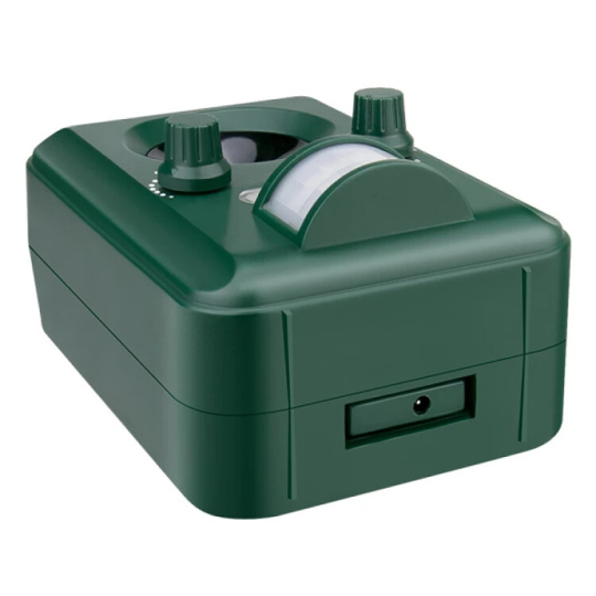 Ultrazvukový odpuzovač vhodný k plašení kun, hlodavců psů, koček, lišek a netopýrů, bezpečný pro člověka. K použití ve vnitřních i venkovních prostorech, vybavený odolným vodotěsným krytem s možností zapíchnutí do země nebo zavěšením na zeď. Odpuzovač s rozsahem tónu v úhlu 110° s plovoucím kmitočtem a dosahem až 1500 m2, s napájením na baterie 3xAA, které se dobíjejí pomocí solárního panelu. Baterie je možné dobít i pomocí dodaného USB kabelu.