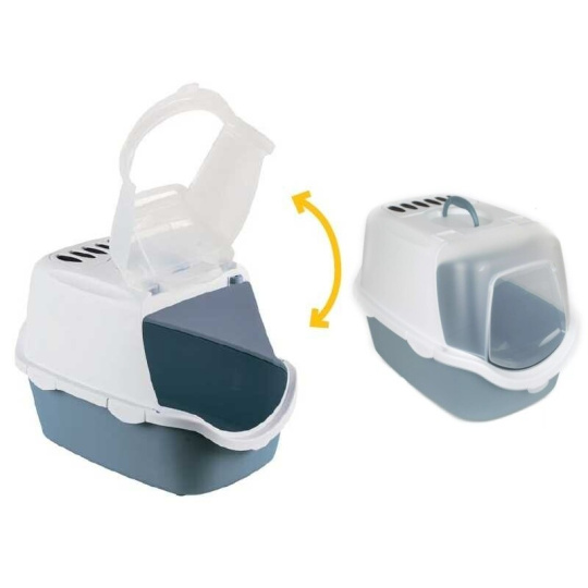 Uzavřené, prostorné wc pro kočky s dvířky z kvalitního odolného plastu.