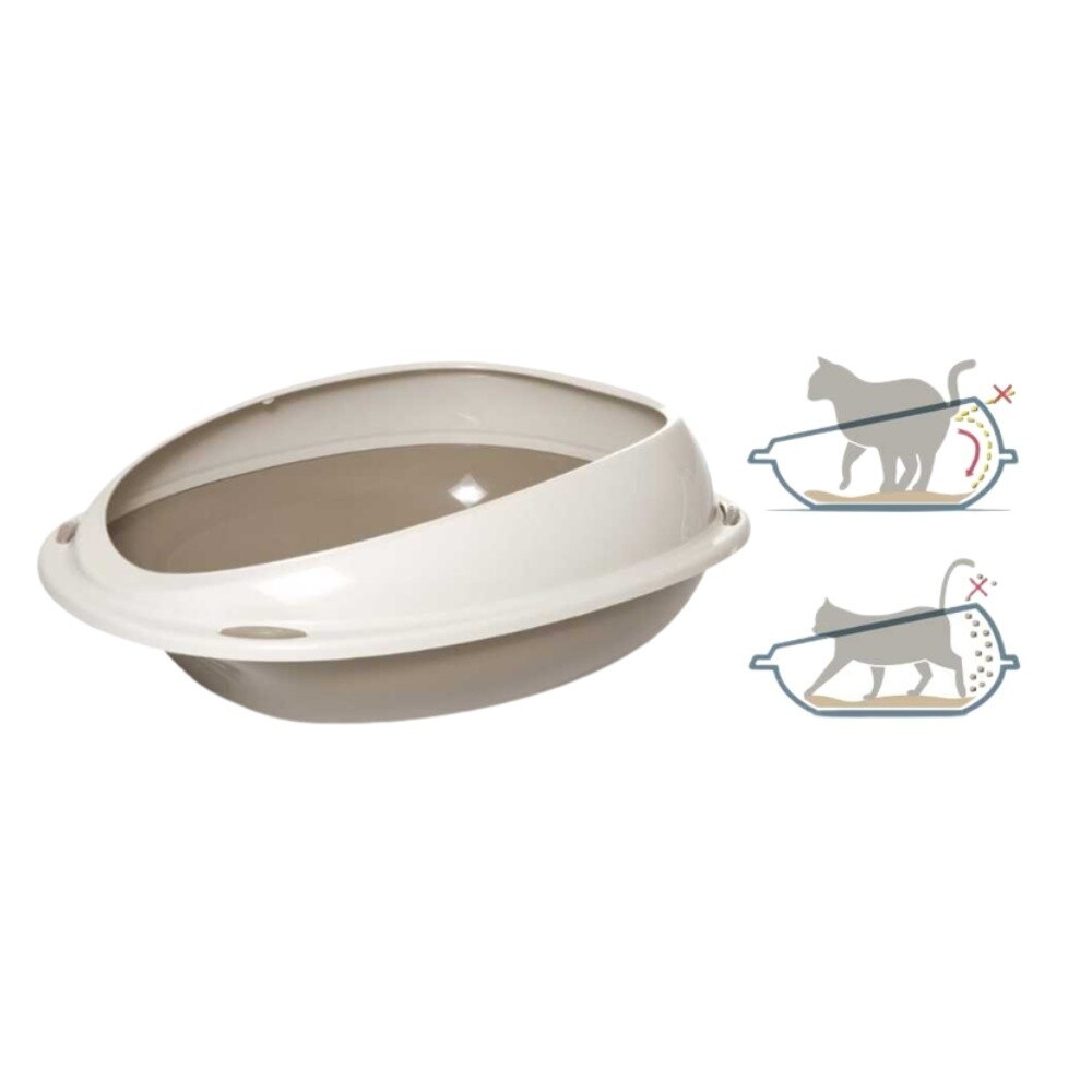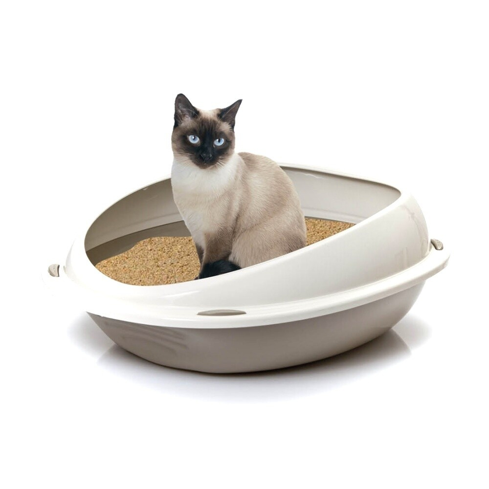 Oválné WC pro kočky z kvalitního, odolného plastu. Zvýšená zadní část pro snadnější udržení steliva uvnitř.