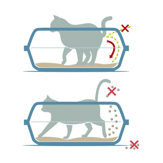 Díky vysokému okraji nevyhrabe kočka stelivo ven.