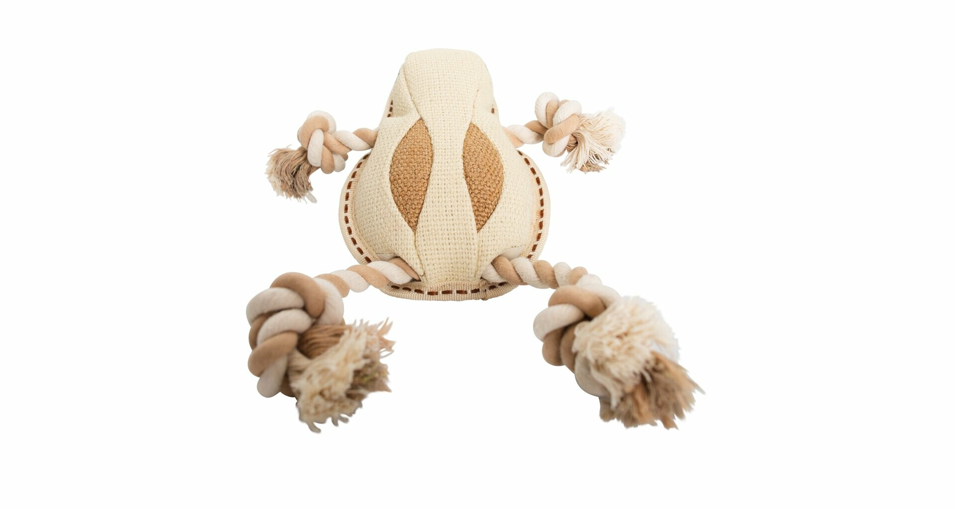 Žába na laně 33 cm, robustní jutová hračka pro psy, HIPHOP DOG, přírodní